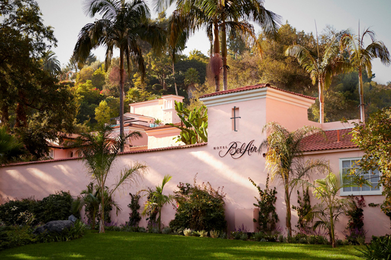 Bel-Air酒店位于洛杉矶,是一家典型的私人高级酒店,坐落在占地12英亩的郁郁葱葱的花园中,自1946年以来提供服务,以其标志性的粉红色西班牙殖民建筑而闻名。