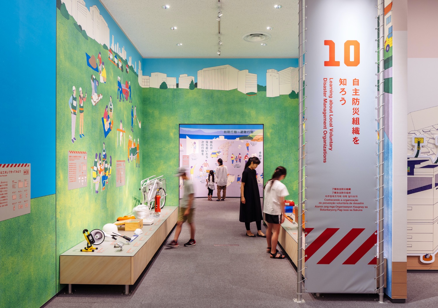 众所周知,日本处于地震带,常年受自然灾害的影响,因此防灾教育显得尤为重要,静冈县地震防灾中心是为了应对东海地震而成立的,旨在提升人们防灾的知识和意识。导视系统以红色和白色的配色为主,巨大的信息面板引人注目。导览手册使用日文、英文、韩文和中文,增强了信息传达度。使用插画的形式营造场景,增强了互动性。丰富有趣的知识图解,增强了人们的探索欲。