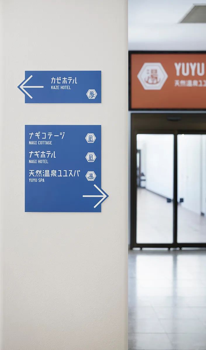 i+Land nagasaki 是位于长崎县伊王岛的官民合作娱乐度假区,是岛屿再生项目的一环。设施的主标志是表现岛屿的图标,个别设施由表现各自特征的图标和文字构成。可以和狗一起住的宾馆、温泉等用途多种多样,遍布全岛,因此需要一个将它们统一起来的标志系统。两个大的区域采用了不同的设计,但又有机地整合在一起,形成了整个岛屿的统一感。