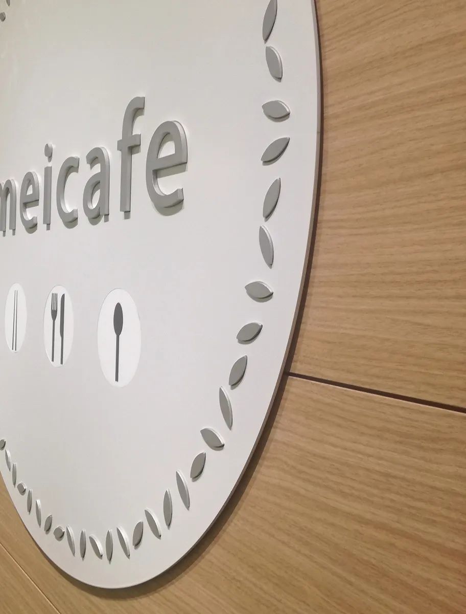 明治创新中心是明治所有研究开发功能的综合研究所,作为口号提出了“饮食创新~明治以外不能做的事情~”。为了实现这种想法,标识是以在 meiji 公司名logo中表现“人们互相依偎支撑的样子”的iji为主题,作为引出一系列标识标牌而置于各处。以通过标识创造与自然融合、一体化的氛围为目标。
