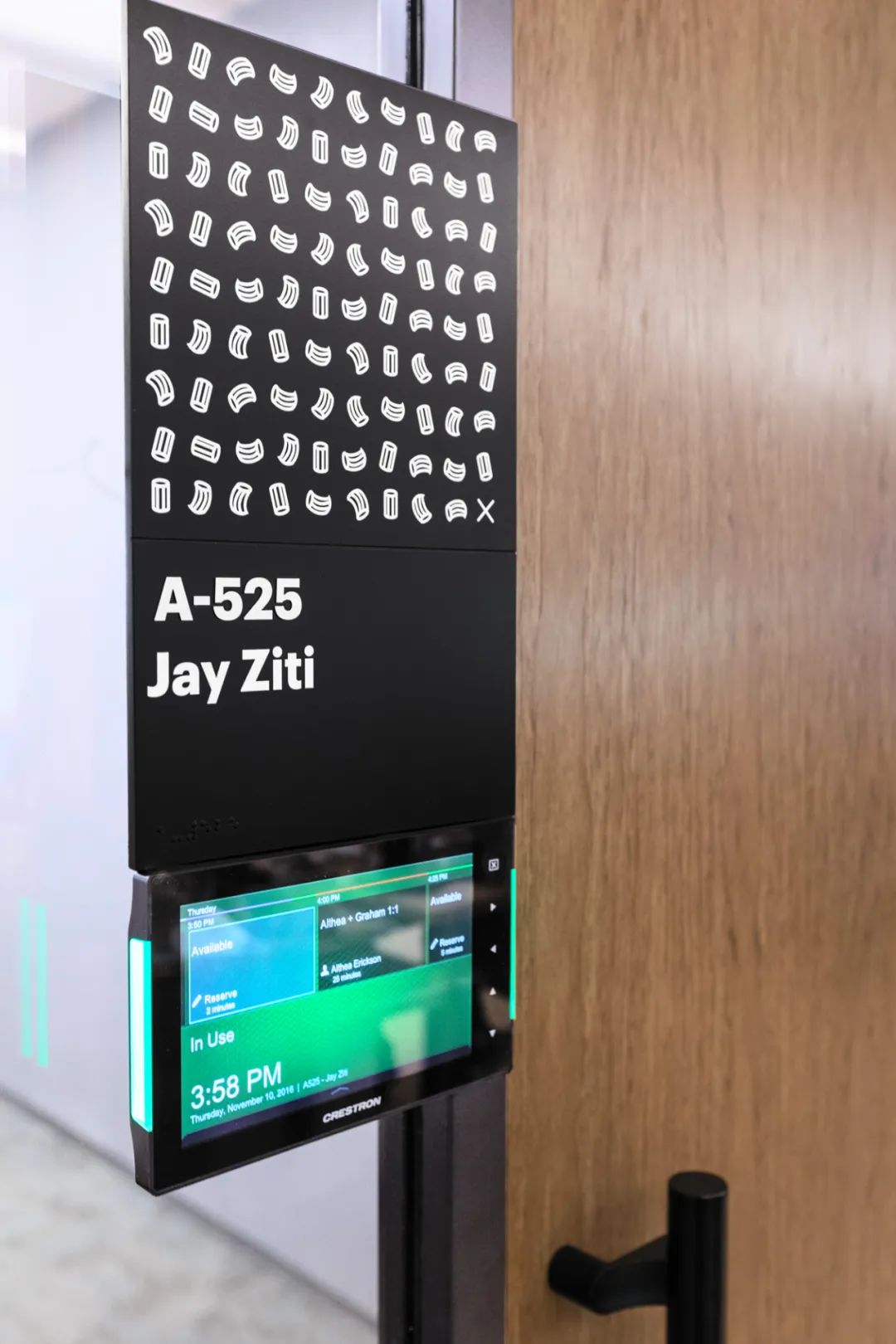 Etsy 总部需要一个环境标识系统,在入口处,工作人员想让入口体验具有纪念意义。与插图画家景伟合作,开发了雕刻在柱子上的“象形文字”和天花板上的壁画。在内部,开发了一个简单的楼层导视框架,可以根据需要进行更改或添加。对于房间标识,该公司有一种共享空间的命名文化,包括将名称与一种食物类型相结合构成每个部门的名称。
