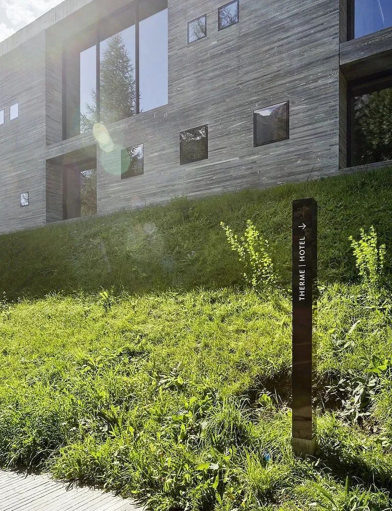 7132 酒店位于瑞士瓦尔斯,是一所五星级温泉酒店,拥有温泉浴场、餐厅、套房和一系列完善的配套设施。基于7132酒店豪华的空间设计,设计采用了极简的标牌,运用黑底白字的配色,对比度高,便于信息的辨识。使用纤细的无衬线字体,凸显酒店的奢华感。特别的是,酒店外墙上巨大的 logo 使人印象深刻,整套导视系统极简而富有格调。