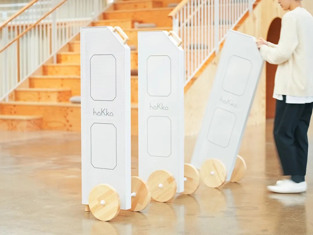 北上市保健·育儿支援复合设施hoKko由商业设施改建而成的公共设施。标牌大量使用金属和木头构成,活用了打孔的的表现形式与连续的竖条形状和竖排文字排版的标识设计诞生了。并运用了剪纸的元素进行标识图标的设计。