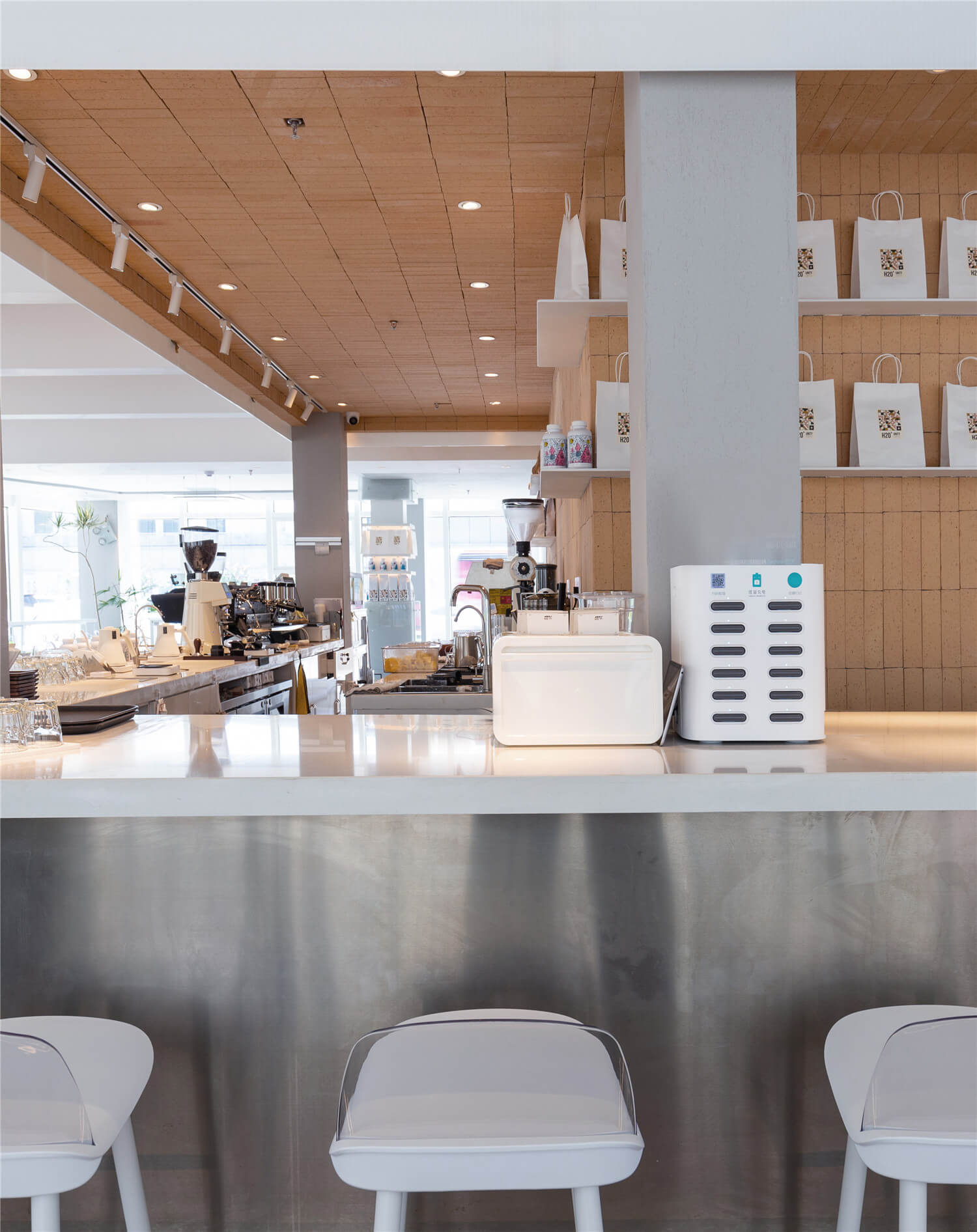 吧台区域一整面红砖墙是对老城区历史记忆的回应,新旧材质的对比让这个区域更富有生机和活力