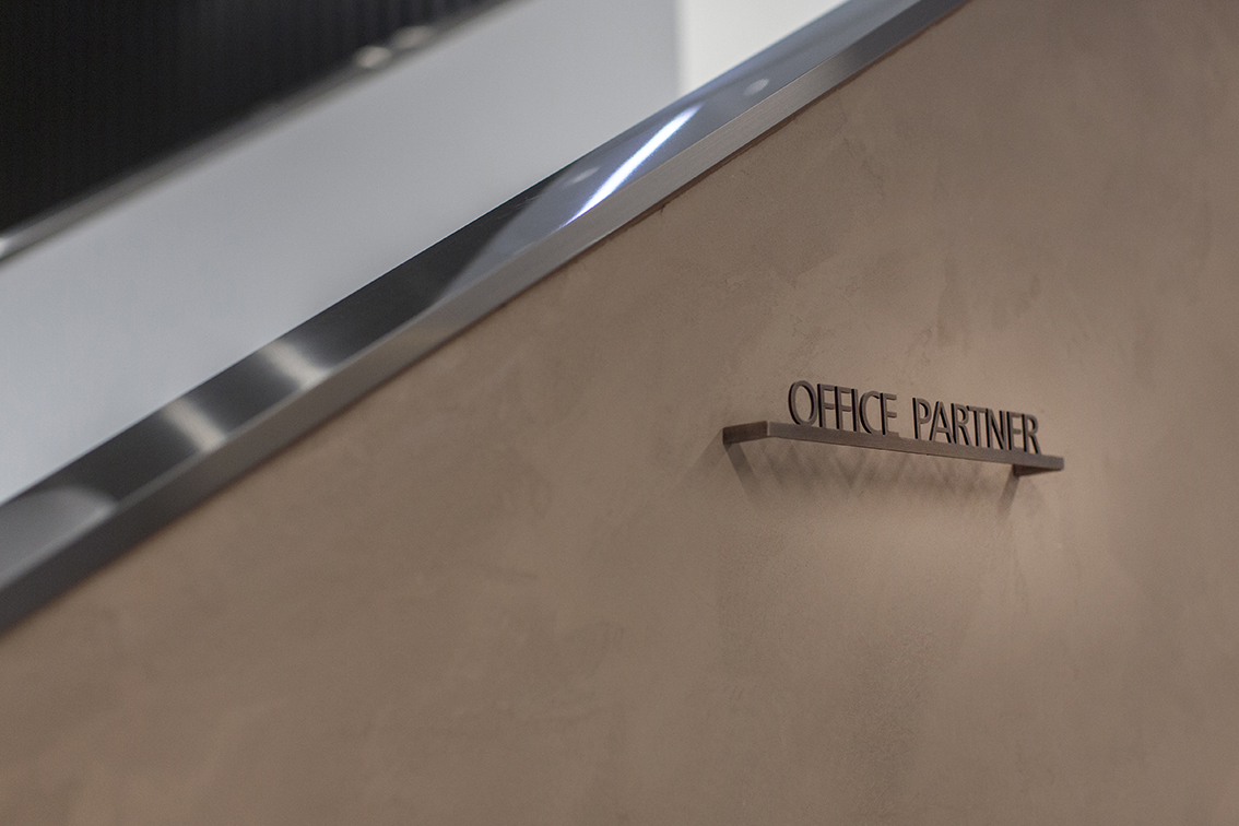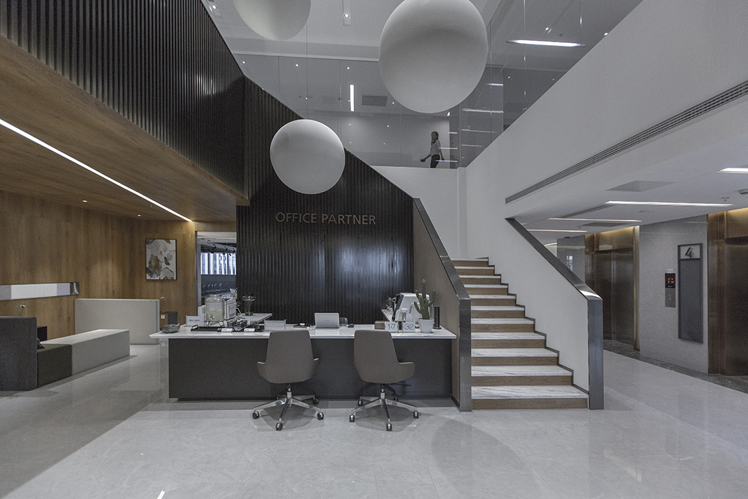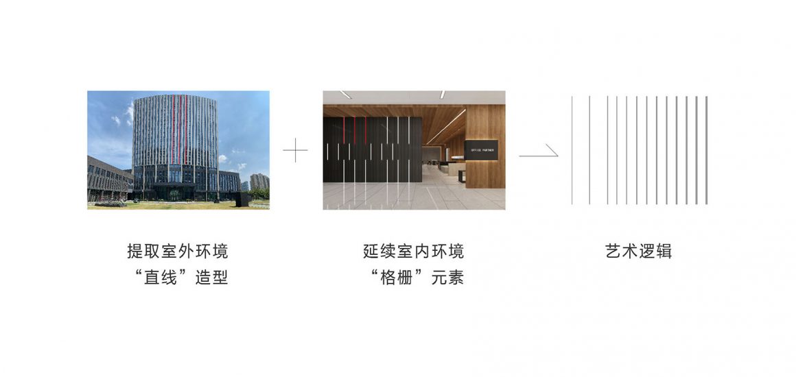 环境语言:高耸的建筑大楼利用了直线条的流畅感,像是披上了一件蓝灰相间的条纹外衣,清爽又低调。设计师便很自然地提取了室外环境建筑大楼的“直线”造型,黑色竖向的线条,刚好与室内墙面的“格栅”元素接近,自然融入到空间中。简洁的几何线条,意味着其品牌与几何本身一样严谨可靠。线条的排列在视觉上有延伸性,增加了空间感。纤细优雅的线条,更显宁静和精致。并进行减法设计,尽量削减了现实感很强的室内标识的要素和大小,重点强调功能性。