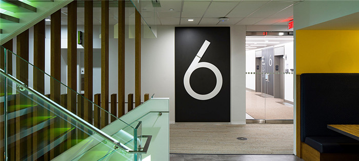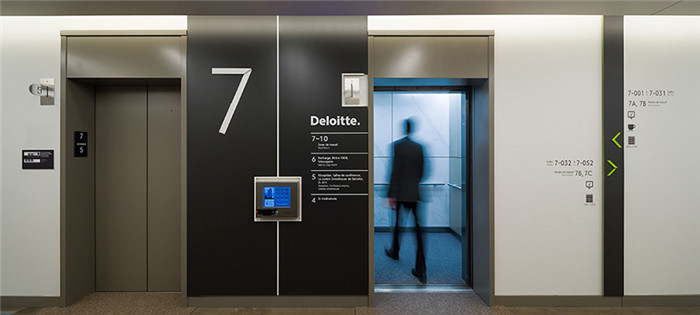 Reich+Petch设计公司为加拿大蒙特利尔的Deloitte(德勤)会计事务所创造了全新的工作环境。Reich+Petch设计公司所构建并实施的导视项目匠心独运、独树一帜,为了实现与室内环境保持一致性,在标牌设计上运用了黄绿两色进行点缀,恰到好处。