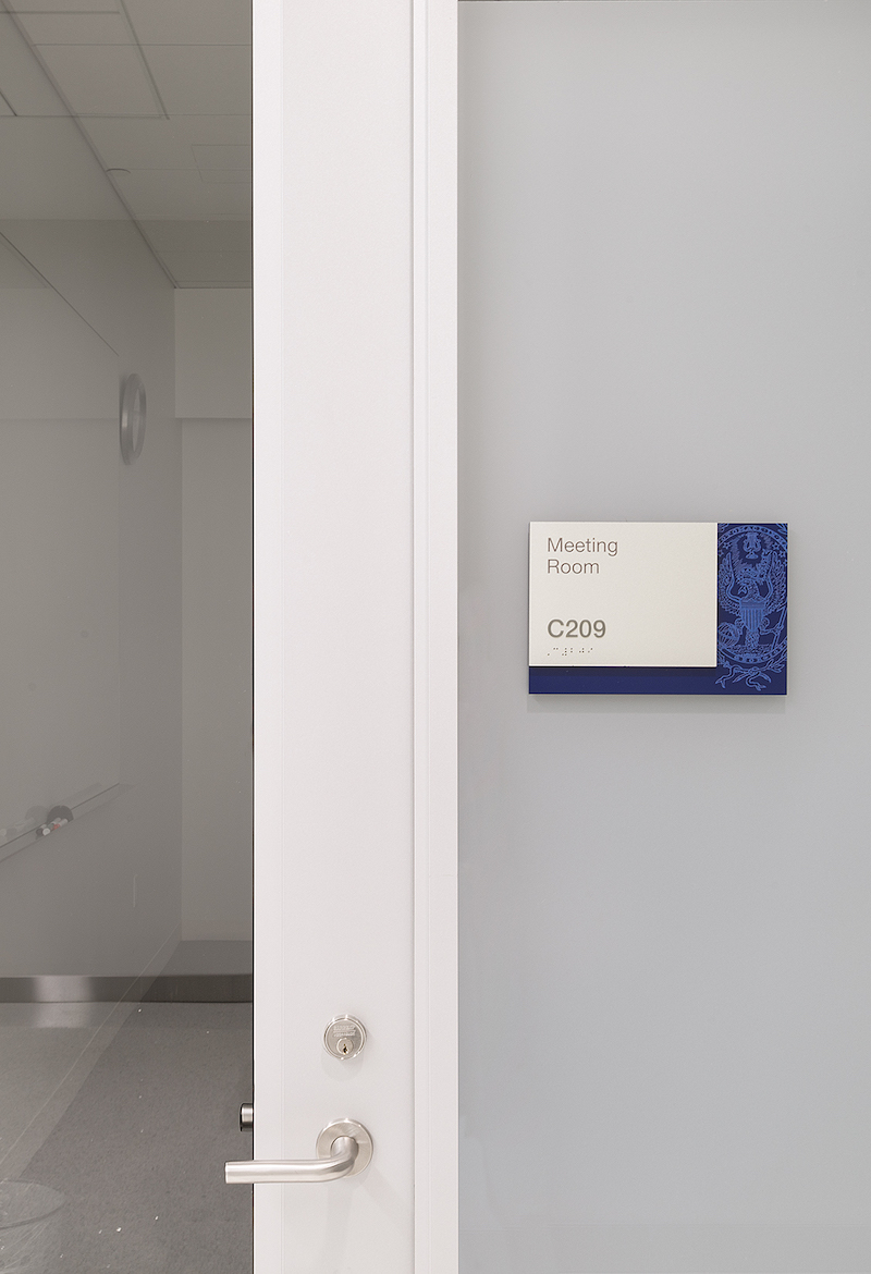 乔治敦继续教育学院位于美国华盛顿,拥有教室、办公室、图书馆、咖啡厅和会议空间等设施,air space受邀为其进行导视系统设计。air space设计了简约的导视系统。采用蓝色、白色和灰色的配色,打造了通透的环境。将城市剪影作为环境图形,营造了具有包容性的学习环境。