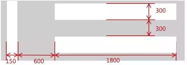 9.人行横道线需与道路中心线保持垂直,一般长1800mm,宽300mm,间距300mm。